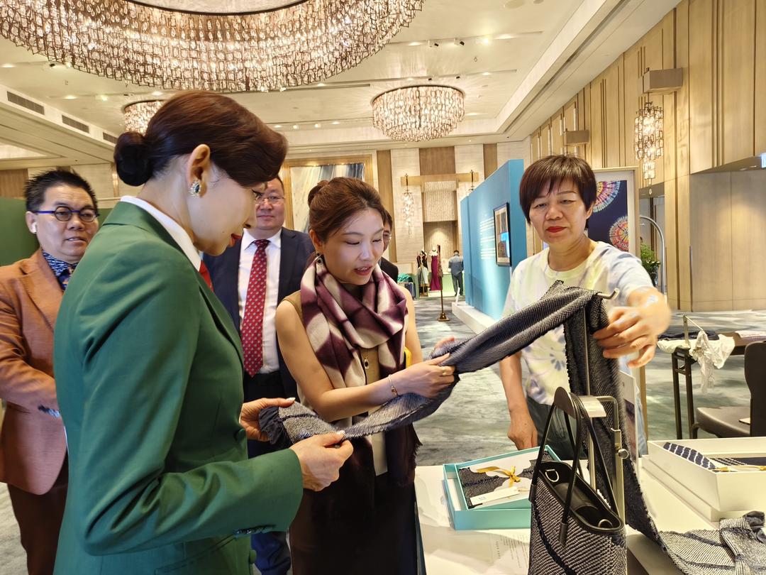4月14日至15日,「錦繡江蘇—經緯裏的江南」展覽展銷在香港嘉裏酒店舉行。南京雲錦、宋錦、緙絲、蘇綉、漳緞、吳羅、扎染、藍印花布等江蘇「非遺」精品組團空降香港,吸引一眾香港嘉賓和市民參觀選購。前來出席活動的港區第十四屆全國人大代表、鄺美雲珠寶有限公司董事長鄺美雲不禁當場「血拚」。