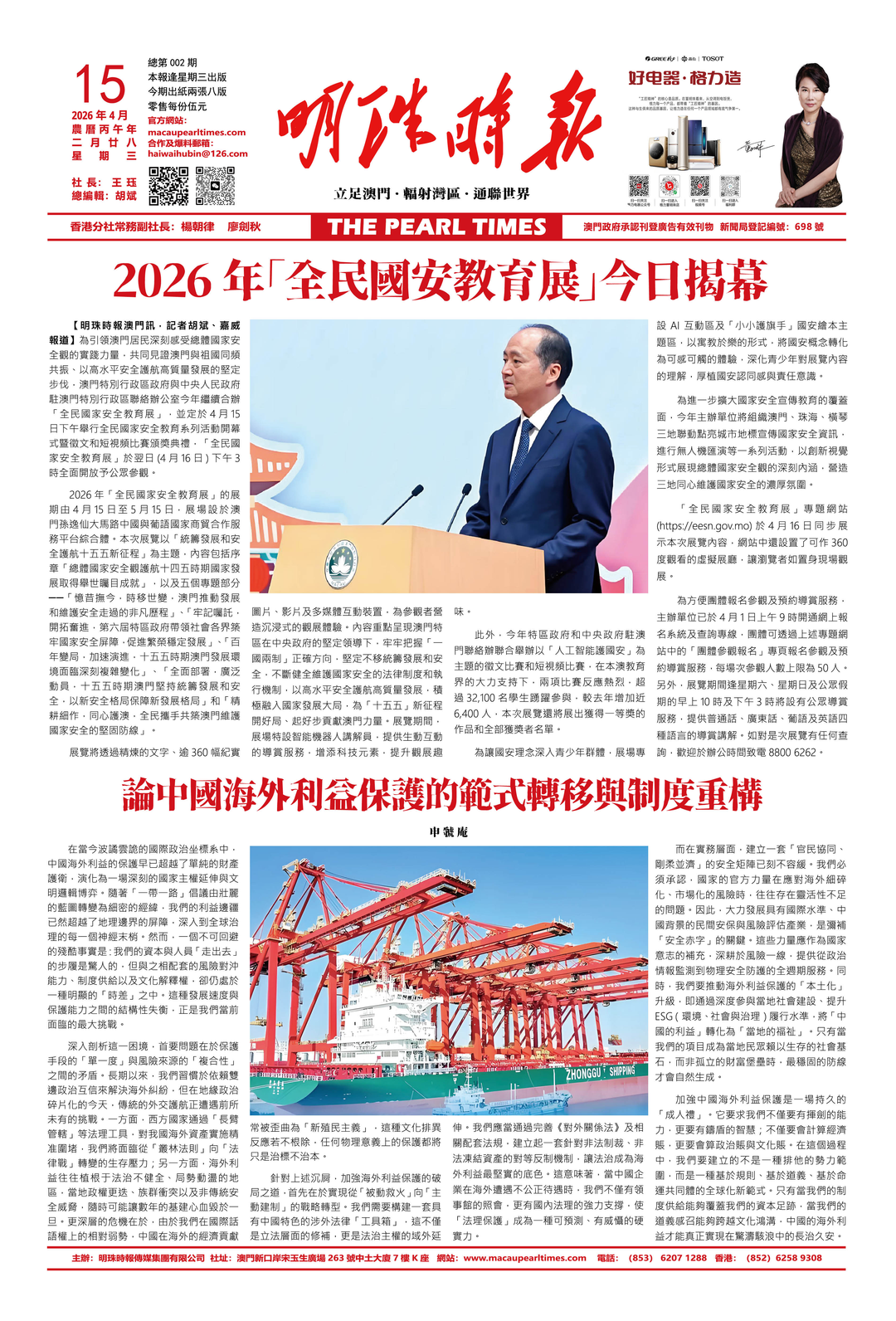 濠江潮涌,奔涌的不只是江水,更是这座城市对安全与发展的清醒判断与长期投入。当越来越多的人在展演与展览中理解“安全是如何支撑我们日常生活的”,当越来越多青年愿意把国家安全观内化为行动自觉,“共筑国安”就不再只是一句口号,而成为澳门社会共同书写的日常叙事。
