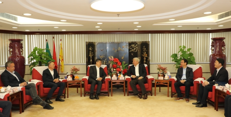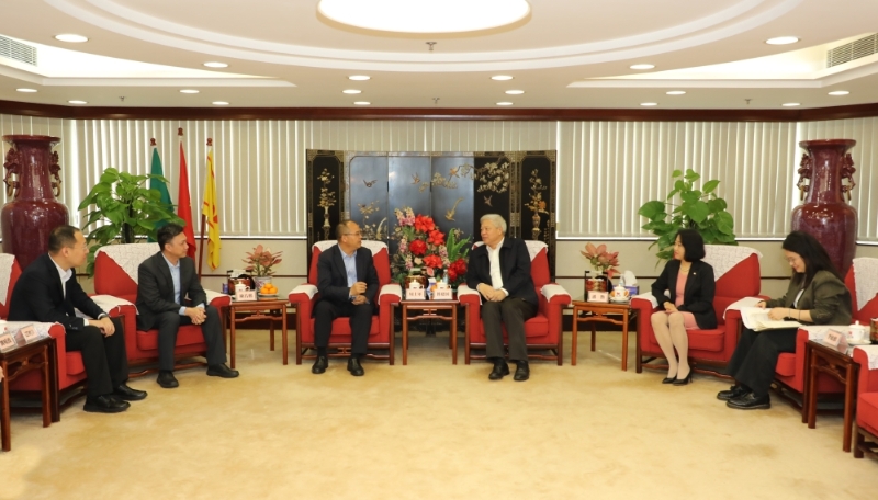 會見澳門航空股份有限公司董事會主席兼執行委員會主席吳立新、中國建築工程(澳門)有限公司董事總經理沈程、中國太平保險(澳門)股份有限公司總經理王平一行